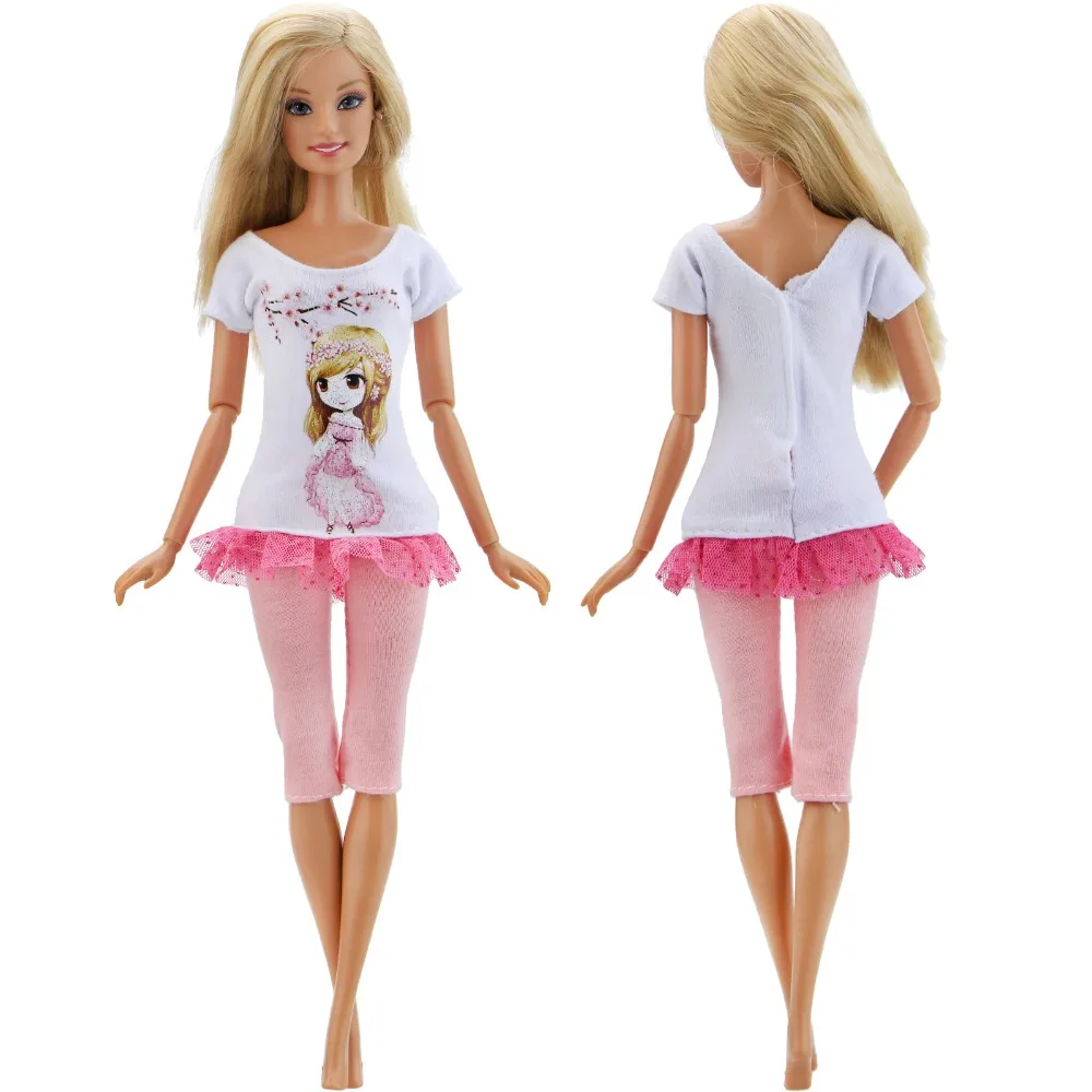 Best Price Comparison With 1 PCS Handmade Fashion Outfit Short Dress Cartoon Cute Pattern T-shirt Leggings Trousers Accessories Clothes for Barbie Doll Toy